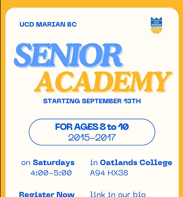 Sign-up form for UCD Marian Junior Academy (5-7 yr olds) and Senior Academy (8-10 yr olds)